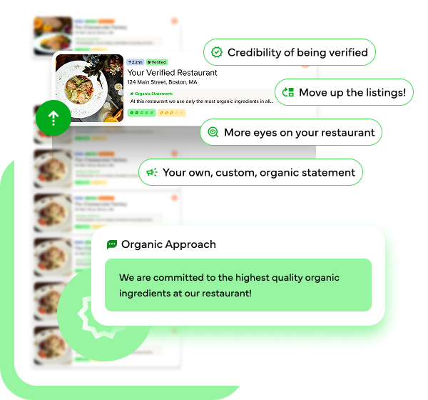 We know you are doing all the hard work by creating a menu with at least some organic ingredients, presenting it to your restaurant goers, and managing everything that goes with it. On our end, we genuinely want to get you more eyes and traffic to your restaurant brand. We do that by sending as many people as we can to your restaurant listing detail page. When people are looking for organic restaurants near me or in specific cities and towns, we help them find the restaurants they are looking for. Since 2012, we have been doing this with our OrganicRestaurants.com platform, and we continue to evolve the digital experience and way we help connect restaurants and organic-minded restaurant seekers.